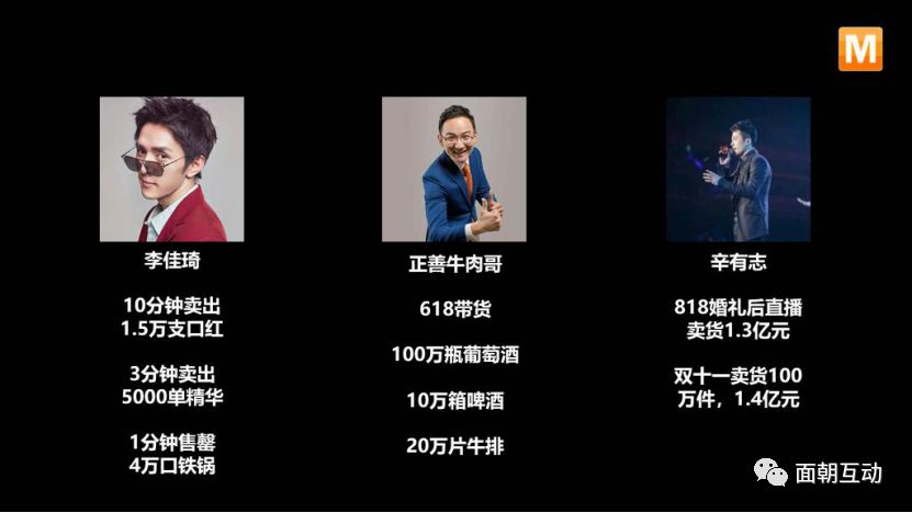 2 017年,直播还没爆火。 薇娅帮一家新店卖皮草,0粉丝,5小时直接卖到7000万,算上返场,真实成交额其实是1.2亿,一战成名。 最高纪录在去年,2小时直接卖货2.67亿。至于什么直播排位赛,常年第一。全年成交额,轻轻松松27亿。 李佳琦曾15分钟卖掉15000支口红,2019年淘宝618,他用3分钟卖出5000单资生堂红妍肌活精华露,销售额超600万。 来源:公开资料整理 网红直播在2018年撑起了淘宝的千亿销售额,接近阿里电商业务一周的成交额。今年的618,双十一,直播带货更是成为各大电商平台的标配。 在网红人数与粉丝规模双增长的同时,网红的变现能力随之增强。截至2018年4月,网红电商GMV年度增长量高达62%。 如果说2018是属于“网红”的一年,那么2019年“网红”的范围则被再次拓宽。从自媒体到短视频红人,从社交媒体平台走向电商交易场,从短视频内容形式到直播。内容和红人的变现边界不断变宽,种草、带货、电商转化成为行业内外最为关注的核心。 0 1 直播电商众生相 有人说,网红直播电商不就是以前的电视购物,但其实是错误的理解。网红直播带货不是电视购物的简单升级版,两者解决了不同的问题,而且电视购物不太可能沉淀私有流量。 单从直播反馈上分析,主播以自身体验在屏幕上给用户呈现最真实的产品体验/打样,同时直播中的实时互动能够更好地反馈用户的问题,而且缩短了以往用户下单购买到收货后的反馈时间,让品牌可以通过直播反馈提高产品响应效率,进而实现多款、多批和小量的产品供应,同时供应链的响应性、稳定性和质量都较为稳定; 图片via:国金证券 直播电商的前身网红电商起于 2014-2015 年。一方面,各类社交和内容平台发展迅速, KOL 影响力越来越大,另一方面,品牌们在淘内的获客成本太高、需要寻找更加便宜的 流量来源。于是,去中心化的网红电商应运而生。 人: 人人皆主播,万物皆可播 主播间的竞争从某个角度来说很简单公平:无论是名不见经传的素人、还是大红大紫的明星,只要能带货,就能脱颖而出。 薇娅在成名前,做过女装批发、参加过选秀比赛、签过唱片公司、开过淘宝网店。 李佳琦在成名之前是欧莱雅的一名BA(Beauty Advisor,美容顾问),通过美 one 与欧莱雅合作的KOL选拔计划成为了一名带货主播。 除了 KOL 之外,另一个越来越耀眼的带货群体是明星。 “九亿少女的梦”林更新好久未露面,最近却出现在了网红张大奕的主播间里,还跟她一起推销起一款生活用品。本来是冲着看林更新的“主播首秀”去的,没想到很多网友却无意中发现了二人的CP(情侣)感,纷纷呼吁“请就地谈对象”。而林更新则自爆两人已经认识多年,大学期间就是朋友,此次为友情助力。 与张大奕同为网红界“鼻祖”的雪梨也没闲着,竟然把范冰冰请到了主播间,来了一场“跨界合作”。不过因为范冰冰近来复出动作频繁,网友的评论并不怎么友好,“自降身价”“混不下去了”“沦落到直播带货了”等声音此起彼伏。尽管如此,在自己最擅长的美妆领域,范冰冰还是很快交出了实战成绩,几分钟销量就突破11万件,销售额轻松破1000万元,也是个不小的数目。 2019年6月30号,主持人柳岩在快手举办了一场声势浩大的“岩值爆表 宠粉节”直播。3个多小时的直播,涵盖了18款食品、小家电、个护等各品类的商品,销售额经估 算约1500万,成绩颇丰。 凤投会伊睿认为:网红经济改变了普通人的命运,让诸多有本领、有创新意识的年轻人找到了新兴创富途径。作为新经济的潮流趋势,“网红带货”值得培育和引导,直播间里的汗水,是互联网时代年轻人奋斗的缩影。 货:从生活日化到美妆服饰,从新品宣发到成熟品牌 目前主要的直播电商平台上带货量最大的品类是服饰穿搭、珠宝、美妆等类目,小编之前做了个TOP主播擅长的品类,基本上是以上几类,但其实车也是可以进行直播。 来源:知瓜数据 10月16日7:00,宝沃汽车品牌联合代言人雷佳音、网红手工耿以及电商主播陈洁kiki,开启电商直播半价卖车!两个半小时的直播活动,累计观看人数459万+,在线预订1623辆车,订单金额2.2亿+。直播预定量,荣登2019年度整车厂商直播预定NO.1,成了汽车圈的营销大事件。 图片Via:网络 场:人货连接枢纽,线下直播基地业态崛起 在这一波直播大潮中,除了出现了很多新 MCN 机构和新品类之外,还出现了一类新业态: 直播基地。 淘宝直播负责人赵圆圆曾如此定义基地以及基地的发展状态:“ 基地俨然成了淘宝直播的线下据点。 依托基地辐射整个产业带,带动传统商家参与直播,这个扫盲过程已经结束了,第一批富起来的人也出现了。” 基地是“场”;从更普世的商业逻辑上看,基地和机构一样,是淘宝直播生态链上的服务商,连接两个最重要的元素——人和货。一个更靠近货,一个更靠近人。 第一种是自营型基地: 基地自持货品或者从别的工厂、商家处收购货品。 第二种是地产型直播基地: 通常是地产商持有房产改造成基地,商家以入驻的模式进入,基地抽取佣金。 第三种是机构型基地: 机构自建供应链,创建属于自己的货品基地。 剩下的业内统称为的供应链(基地),工厂或品牌自建的直播间。 图片Via:国盛证券 0 2 直播平台跑步入场,千亿蓝海将爆发 跑步入场,抢流量,争粉丝,对电商来说,直播江湖注定是个竞争激烈的名利场。 快手的爆发 快手是互联网产业中一个典型的厚积薄发的产品。“记录世界记录你