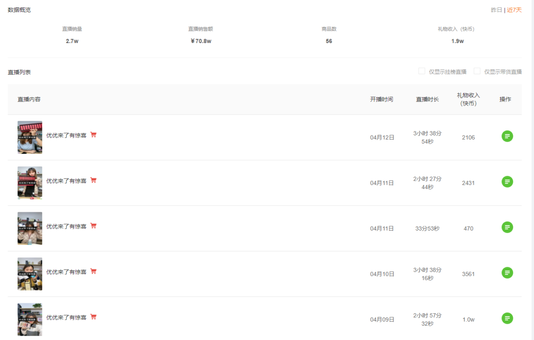 △飞瓜快手-带货直播记录