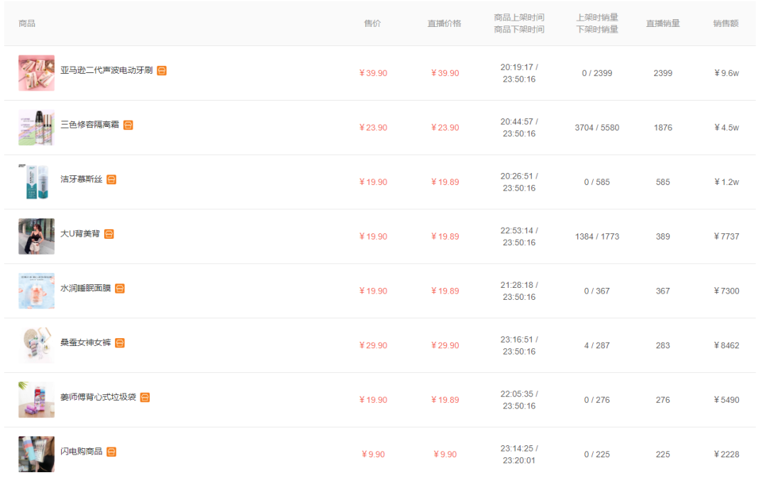 △飞瓜快手-直播商品数据分析