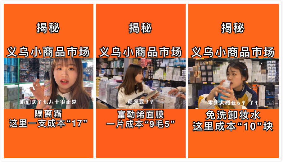 短视频内容主要是介绍厂家批发商品的超低价格,然后和高出数多倍的市场价进行对比,满足用户对于商品真实成本的好奇。封面上的文字是醒目的商品批发价格。