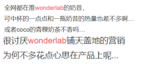 对于任何产品或品牌,都有一个获取、激活、留存到成交的完整过程,本质是让更多用户进来,持续去使用去变现。但是据小编了解,对于Wonderlab,社媒渠道上的声音并不都是正面的,比如微博上,就会有这样的评价出现。过多的营销手段让用户无法了解产品的真实情况,消费后反而产生了反作用。