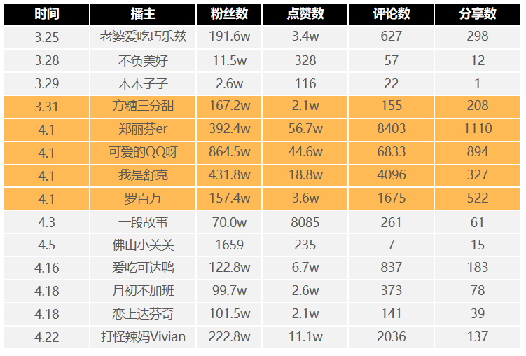 在抖音平台的布局也跟随着这次跨界变动,根据飞瓜数据整理,3月31日开始,大量投放头部账号,4月1日,Wonderlab同时投放了5位百万粉丝量级的播主,比如“可爱的QQ呀”,“我是舒克”这类在飞瓜数据生活榜单TOP50的账号,获得了大量点赞及曝光。