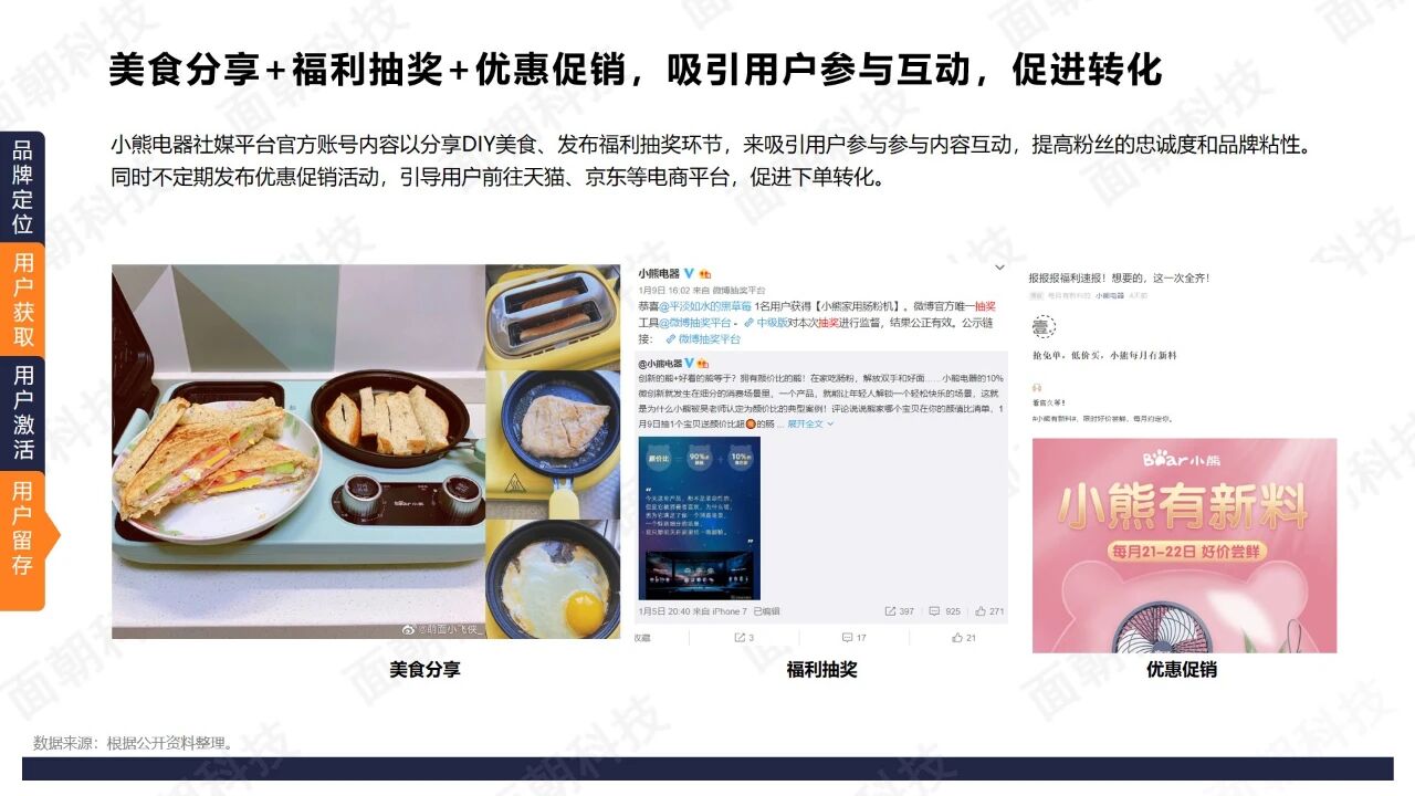 小熊电器是如何出圈的?报告从品牌定位、用户获取、用户激活、用户留存四个方向深度解析了小熊电器的品牌社媒营销过程,下面选取几个关键点分析,更多内容可在40页完整正序报告中查看。